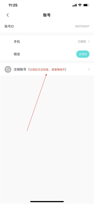 4、在账号页面点击注销账号选项,弹出注销确认弹窗。