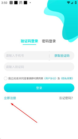2、在登录页面点击立即注册选项,进入手机号注册页面。