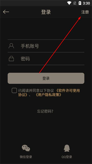 2、在登录页面点击右上角的注册选项,进入注册页面。