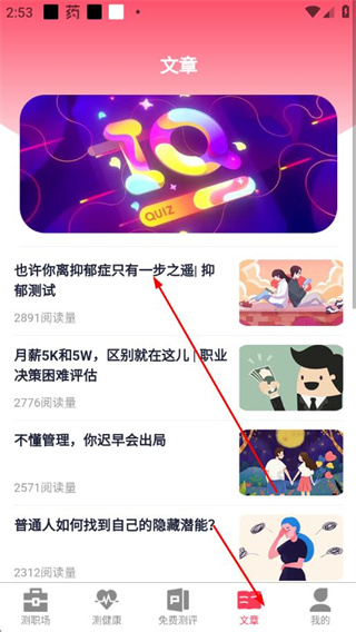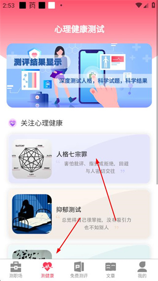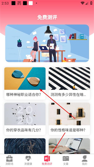 4、推送与心理、职场相关的内容,辅助用户深入了解测试背后的知识。