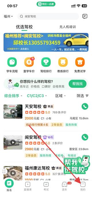 1、打开驾校一点通app,点击底部导航栏的我的选项。