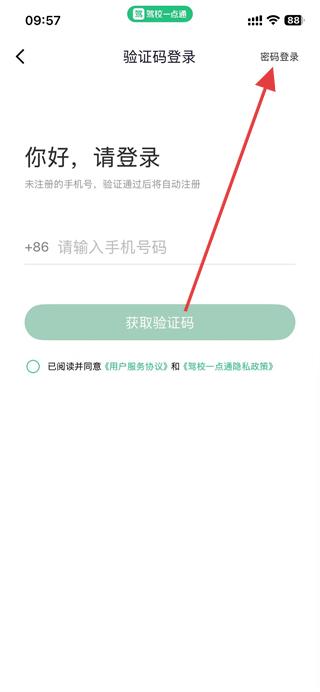 3、在登录页面中,找到并点击右上角的密码登录选项。
