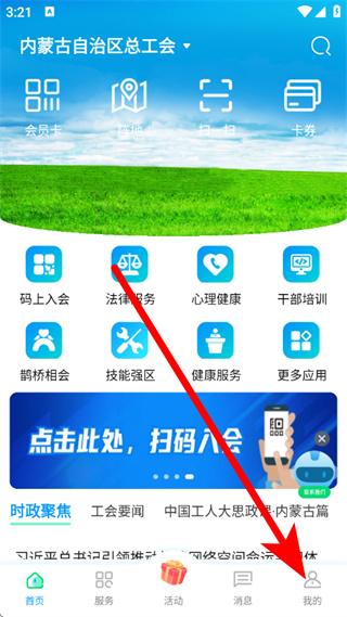 1、打开北疆工惠,点击底部我的,进入个人页面。