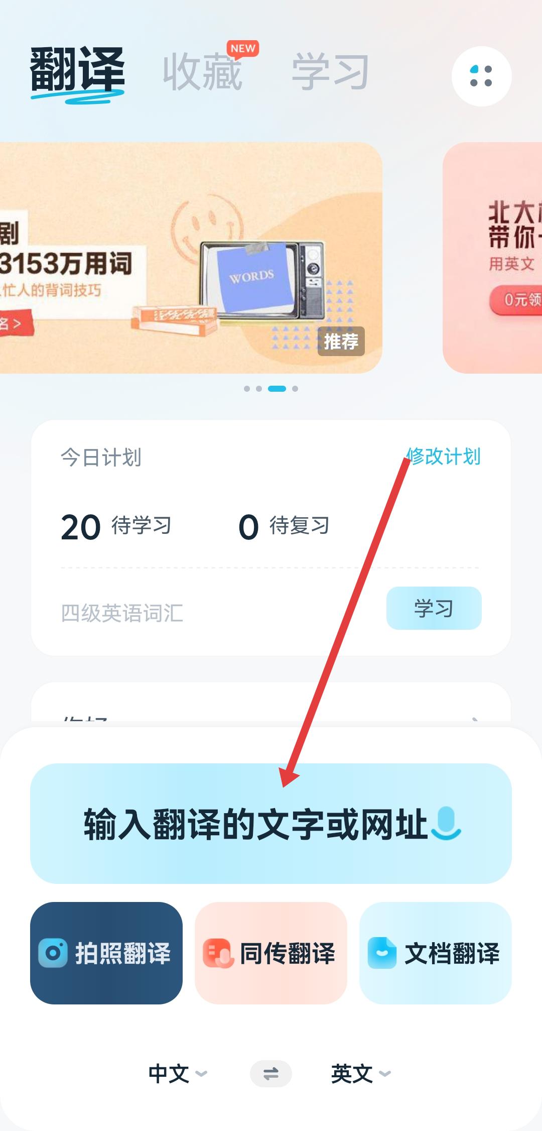 1、打开有道翻译官APP,在主界面的输入框中输入要翻译的内容。