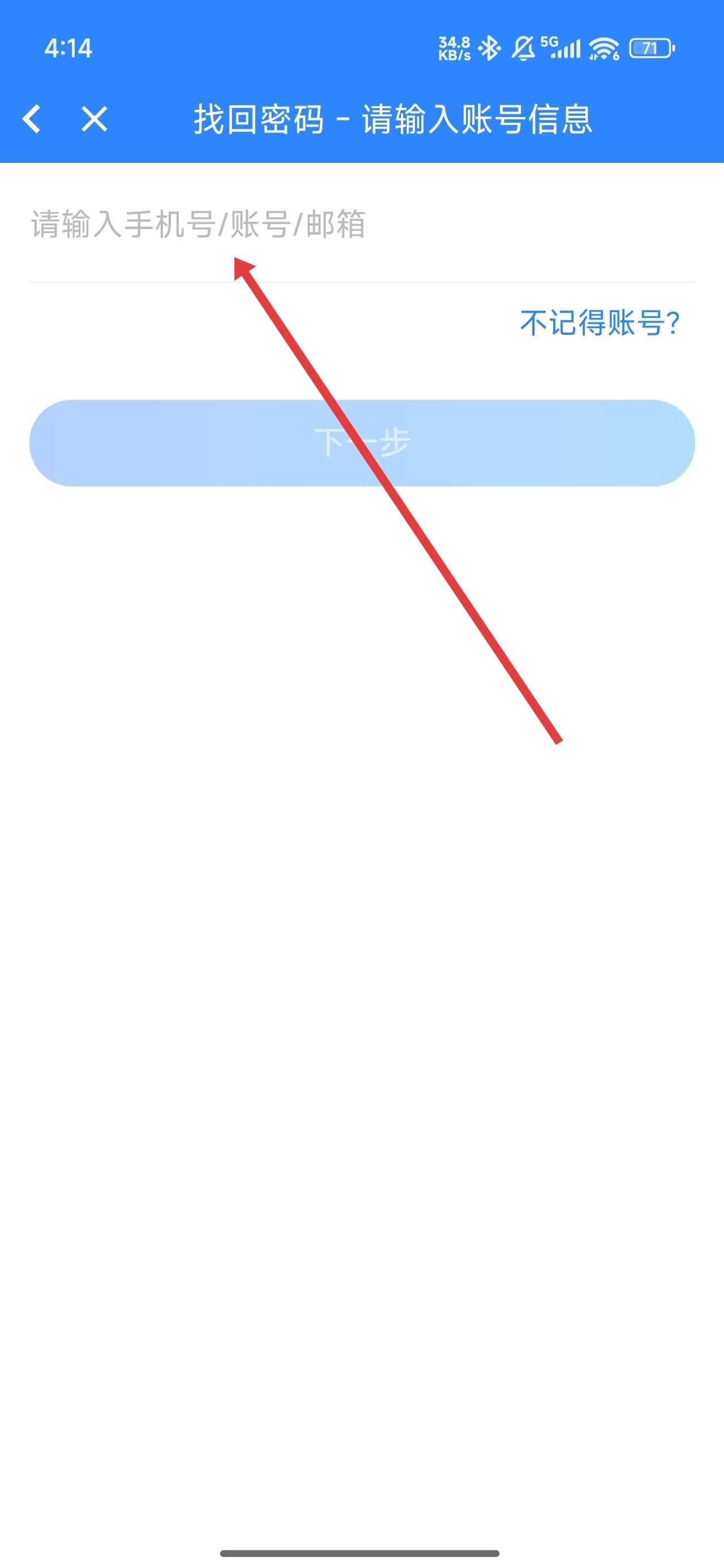 3、跳转到找回页面中,点击输入框输入提示范围内相应的信息后,完成找回操作。