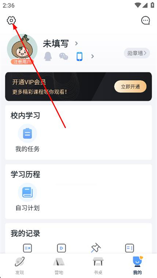 2、在个人中心页面,点击左上角的设置,进入设置页面。
