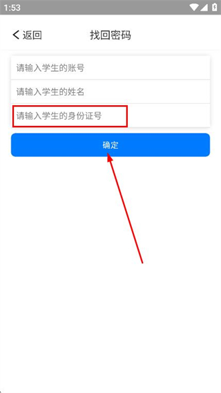 4、填写身份证号,点击确定,按提示完成密码找回。
