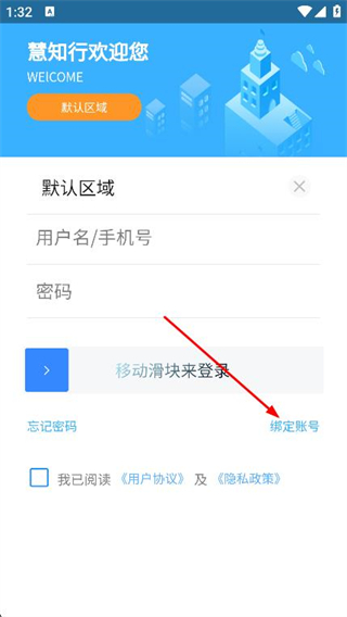 1、打开APP,在登录页面点击绑定账号,进入绑定手机号页面。