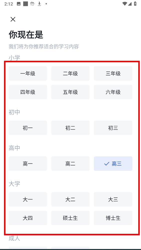 3、在弹出的你现在是界面中,选择需要修改的对应年级选项,即可完成年级修改。