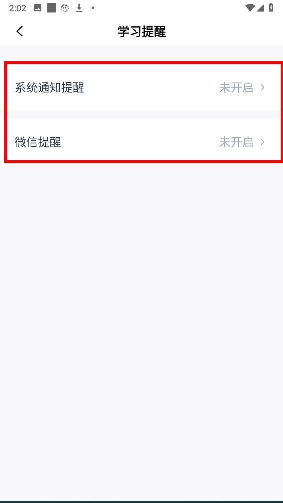 3、进入学习提醒页面后,有两种的通知方式,推荐选择系统通知提醒。