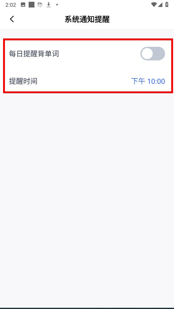 4、在系统通知提醒页面里,将每日提醒背单词的开关打开,并设置好提醒时间,即可完成背单词提醒的设置。