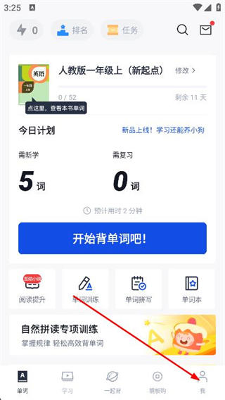 1、打开百词斩APP,点击页面底部导航栏最右侧的我选项。