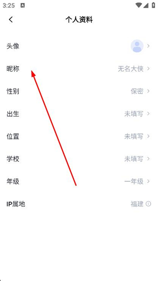 3、在个人资料页面中,点击上方的昵称选项。