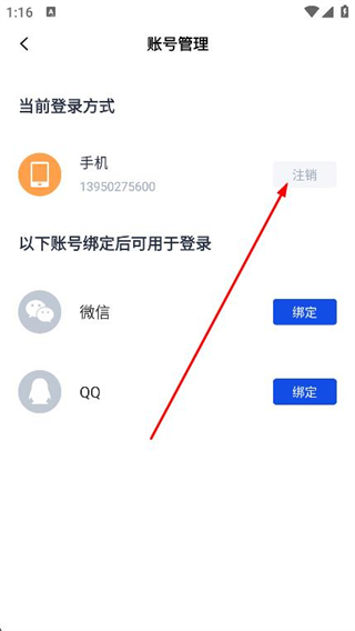 4、在账号管理页面,点击注销,按提示完成账号注销操作。