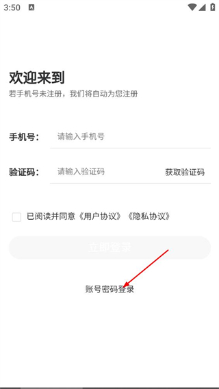 2、在登录页面,点击账号密码登录选项,切换至账号密码登录界面。