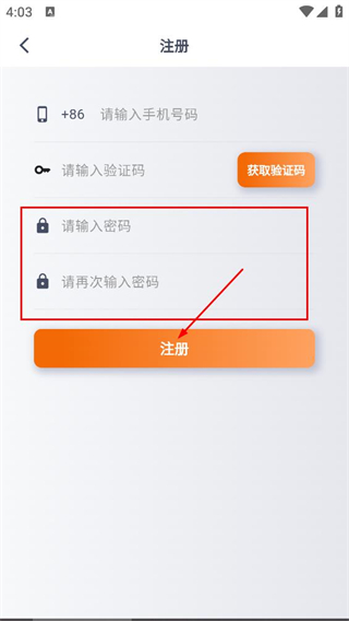 3、在注册页面,填写请输入密码并请再次输入密码确认,点击注册完成账号注册。