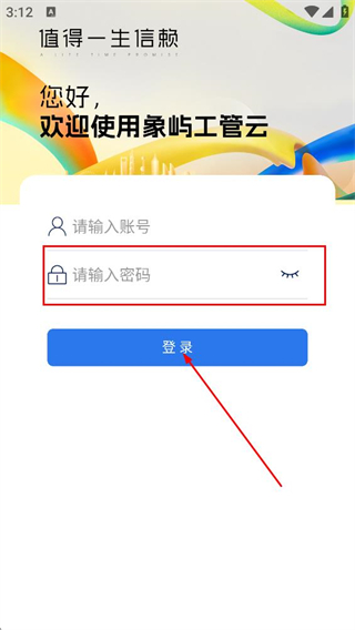 3、在登录页面,继续填写密码,点击登录完成象屿工管云的账号登录。