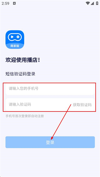 3、在短信验证码登录页面,填写手机号与验证码,点击登录完成播店的账号登录。