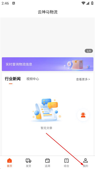 1、在云神马物流首页,点击底部的我的选项,进入个人页面。