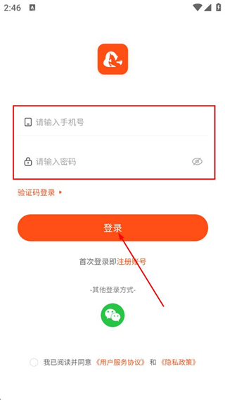 4、在账号密码登录页面,填写手机号和密码,点击登录,完成账号登录。