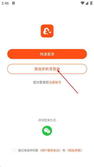 3、在登录选择页面,点击其他手机号登录选项,进入账号密码登录页面。
