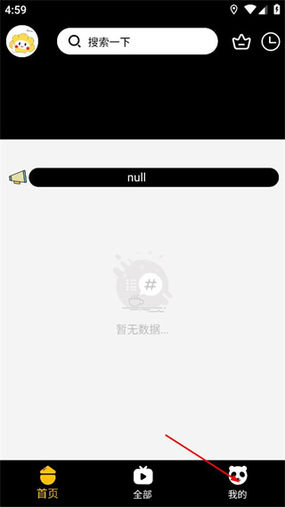 1、打开贝壳追剧软件,进入首页后找到下方功能栏里的我的选项,点击该选项进入个人页面。