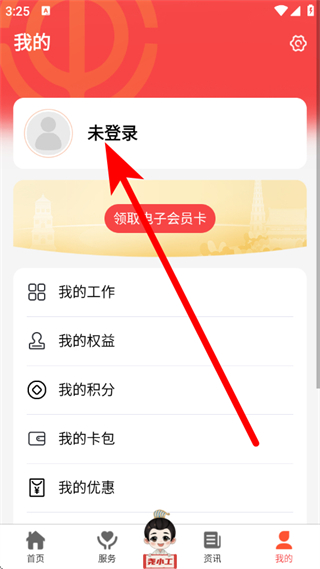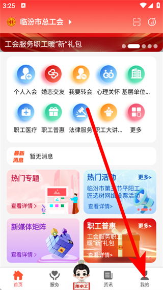 1、打开临汾工会,点击底部的我的,进入我的页面。