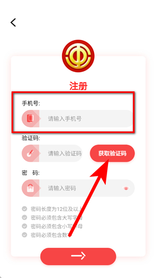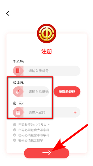 5、输入验证码,设置密码,点击箭头,完成注册。