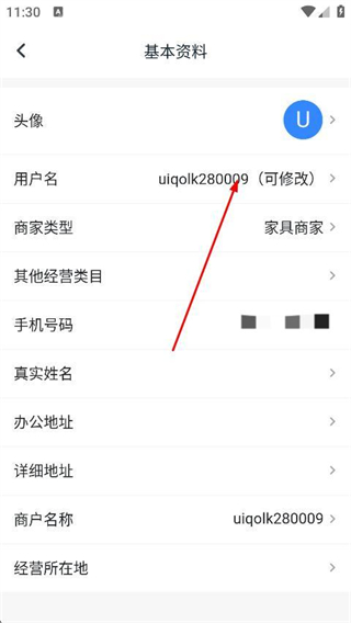 3、进入基本资料页面后,找到用户名选项,点击该选项。