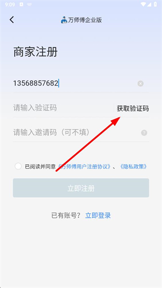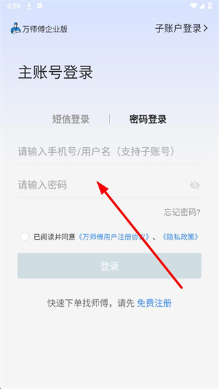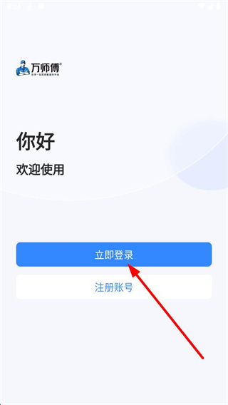 1、在万师傅欢迎页面,点击立即登录按钮,进入主账号登录页面。