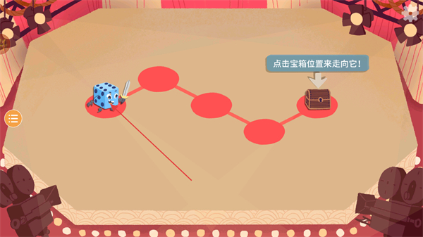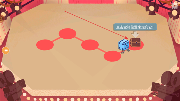 1、按照提示点击宝箱位置来走定向,操控骰子角色沿路径向宝箱移动。