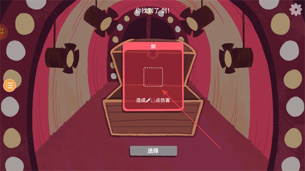3、开启宝箱获得剑,其效果为造成1点伤害,点击选择获取该道具。
