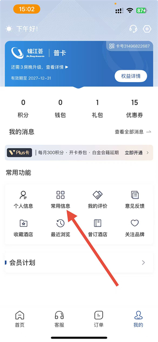 2、在我的个人页面,找到常用信息选项并点击,进入对应界面。