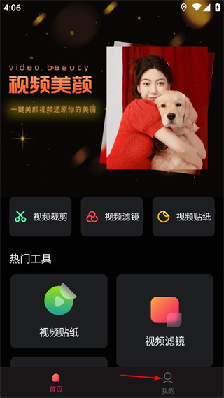 2、进入视频美颜首页,找到页面下方的我的选项,点击该选项进入对应的个人中心页面。