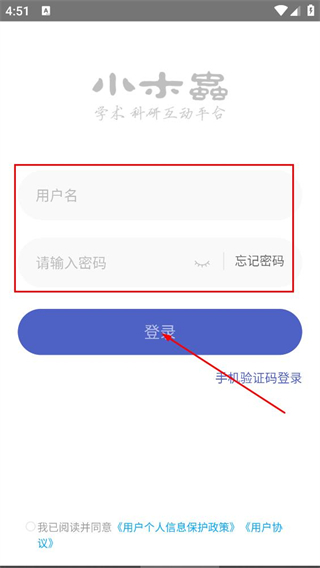 4、在账号密码登录界面,填写用户名和密码,点击登录完成平台的账号登录。