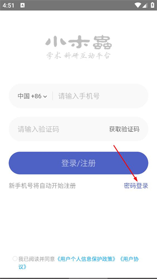 3、在登录页面,点击密码登录选项,切换至账号密码登录界面。