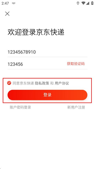4、勾选同意相关隐私政策和用户协议的选项,点击界面中的登录按钮完成登录操作。