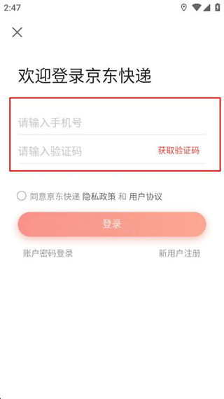 3、进入登录界面后,在对应输入框内填写手机号码以及获取到的验证码信息。
