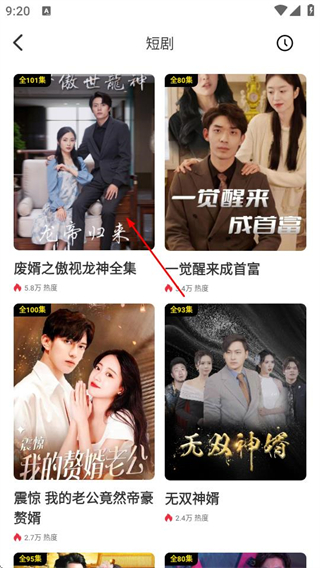 2、在短剧页面,点击目标短剧条目,进入该短剧的播放页面。