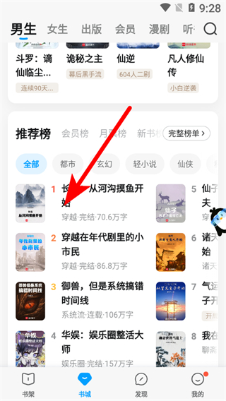 1、在QQ阅读书城页面,点击想要分享的书籍,进入书籍详情页面。