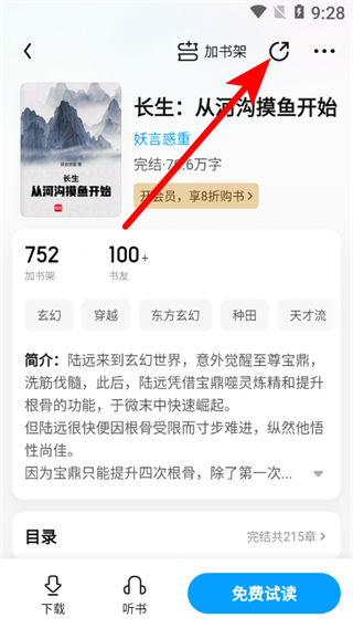 2、在书籍详情页面,点击分享图标,弹出分享选项列表。