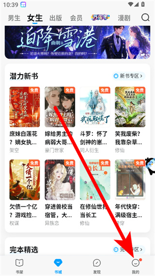 1、在QQ阅读书城页面,点击右下角我的选项,进入个人页面。