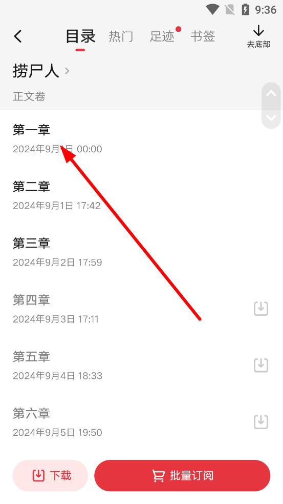 2、在书籍详情界面,点击左下角的目录按钮,就可以进入目录查看页面。