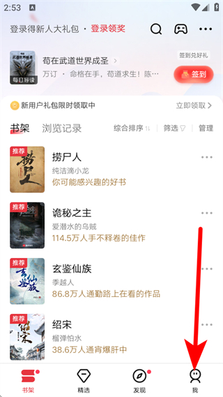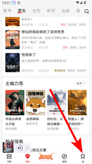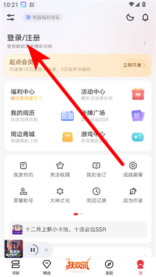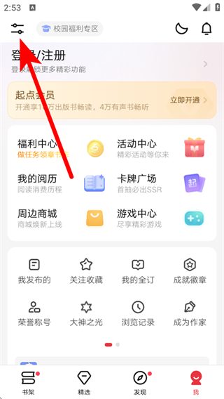 1、在起点读书精选页面,点击右下角我的选项,进入个人页面。