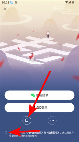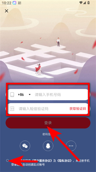 3、在登录界面,选择手机号登录方式,勾选协议填写对应信息。