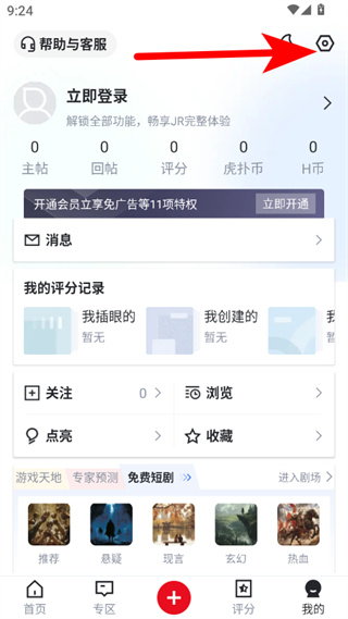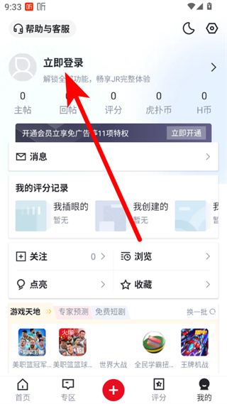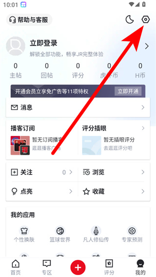 1、在虎扑首页,点击右下角我的选项,进入个人中心页面。