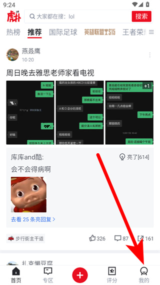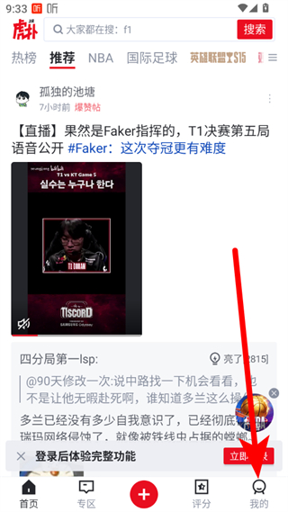 1、在虎扑首页,点击右下角我的选项,进入个人界面。