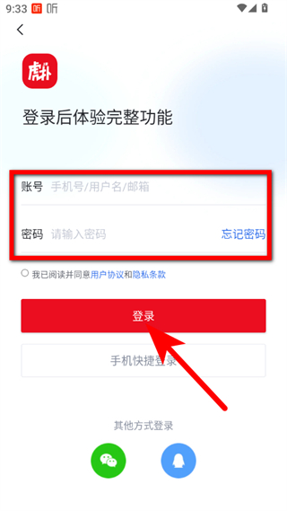 4、输入账号和密码,勾选同意协议后点击登录按钮,即可完成虎扑密码登录操作。