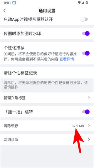 4、在通用设置页面,点击清除缓存选项,完成缓存清理操作。