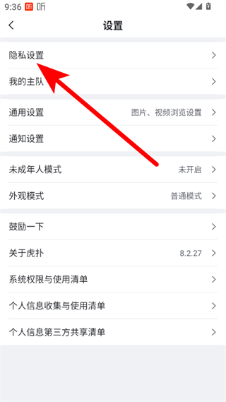 3、在设置页面,点击隐私设置选项,进入隐私设置界面。